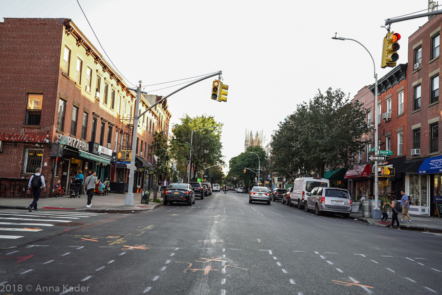 The NYC Department of Transportation is redesigning Court Street between Schermerhorn Street and Hamilton Avenue. The changes include a protected bicycle path, reduction from two traffic lanes to one southbound, and various pedestrian improvements.